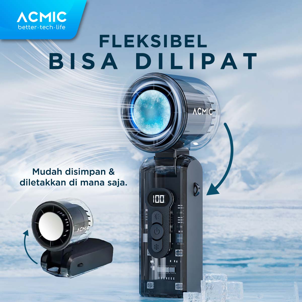 ACMIC Ice Cooling Fan CF01 Kipas Angin AC Mini Portable Digital Display Folding Cooling FAN Air Flow Cool & Powerful