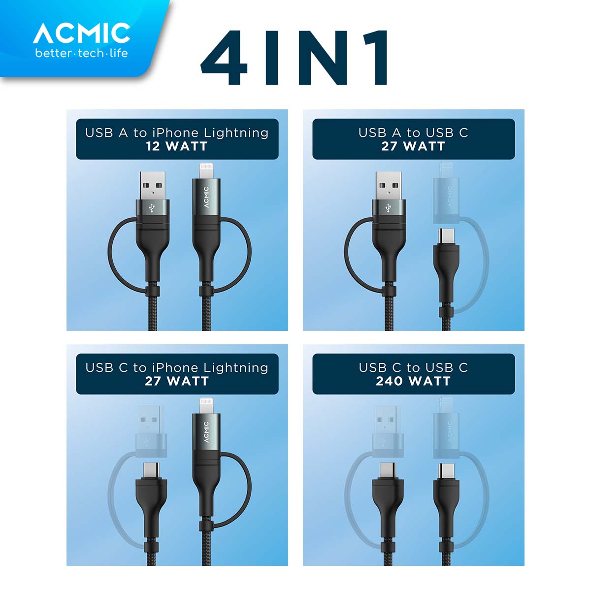 ACMIC OMNILINE 4in1 240W Kabel Data PD 3.1 Power Delivery Ultra Fast Charging USB Type-C iPhone Lightning